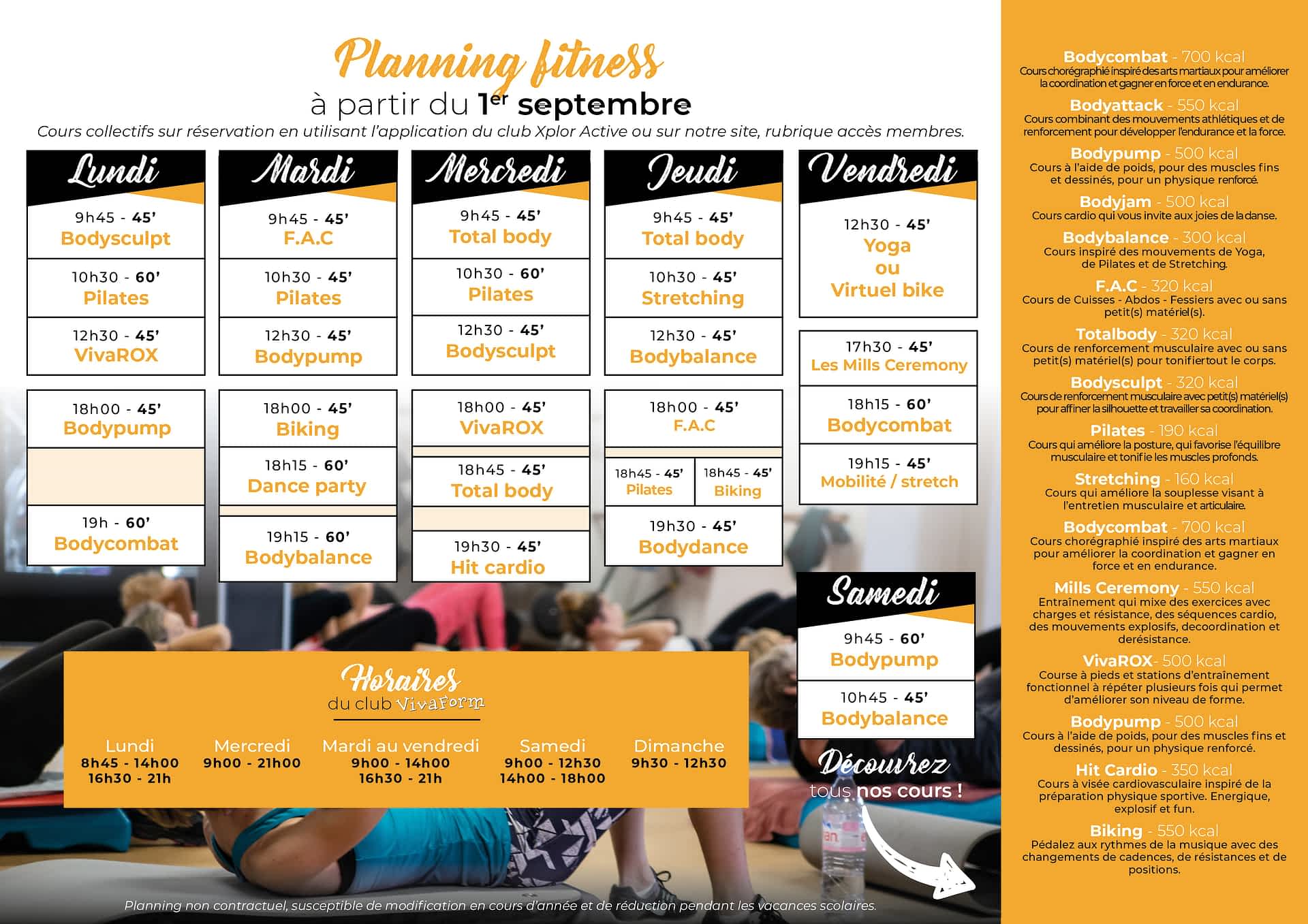 VIVAFORM est un club de remise en forme multi-activités (fitness, squash, musculation, cours aquatiques, détente, leçons de natation, nutrition…). Ce club, né en 1997, propose des activités convenant à tous les âges (de 6 ans à 99 ans) dans un espace de 1500 m2. L’équipe est composée de quatre éducateurs sportifs fitness et musculation, de deux maîtres nageurs et d’un éducateur sportif squash. Pour les infos et photos d’actualités, merci de vous connecter sur notre page facebook (accessible même si vous n’êtes pas membre de Facebook).